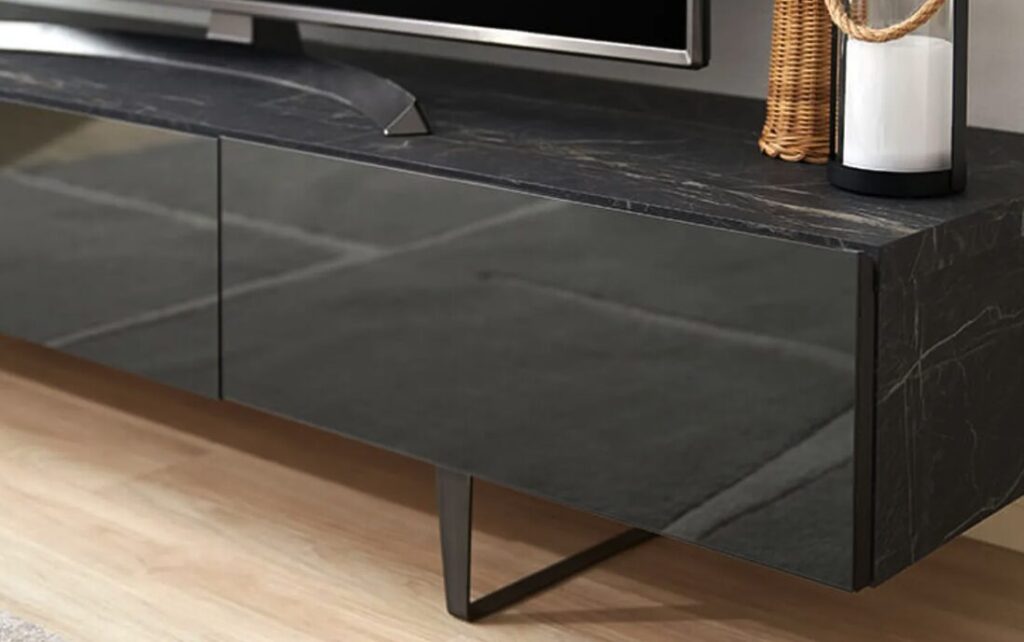- [幅180]ローテレビ台 日本製 収納付 スチール脚 大理石柄 大理石家具