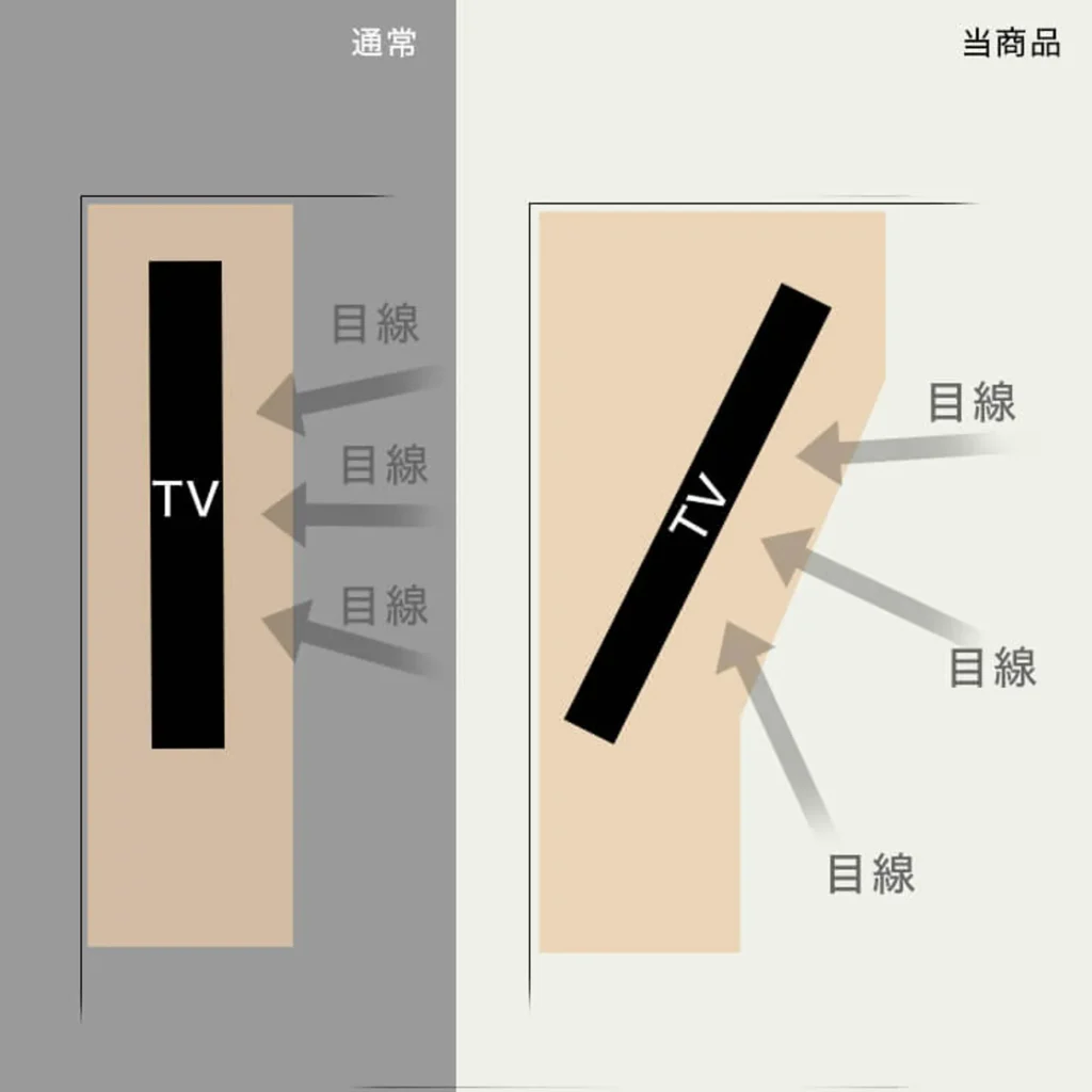 - 部屋の様々な角度からテレビ画面が見やすい配置になる。