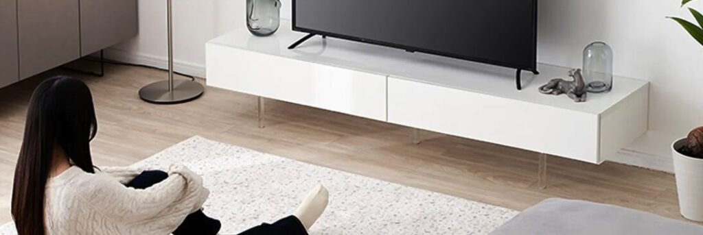 - ソファや床に座って見上げる形にならないため、長時間視聴しても首や目が疲れにくい。